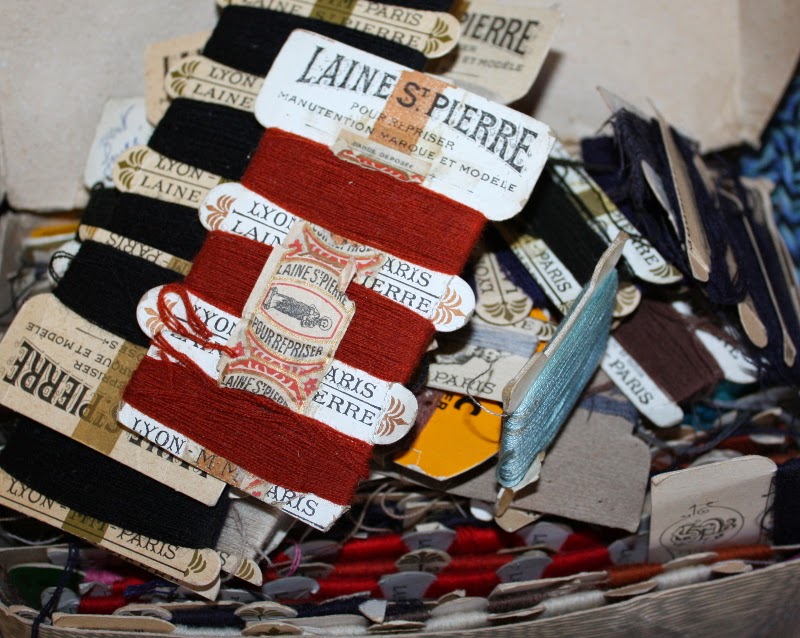 I end up buying a few Playmobil. A bunch of Littlest pet Shop (17 of them, most from the first 100). I bought a lovely antique ink stamp, very large and elaborated. 2 books for my son. Some vintage buttons, cute ones and a huge lot of antique silk and wool threads on card along with balls of cotton threads and a few lovely wool skeins.